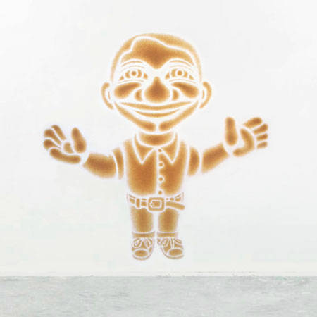These images are made with dirt and water. They stay up indefinitely but clean off.